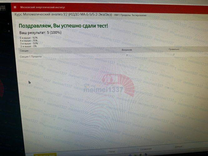 Для студентов ИДДО НИУ «МЭИ» по предмету Математический анализКМ-1. Пределы. Тестирование - 100%КМ-1. Пределы. Тестирование - 100%