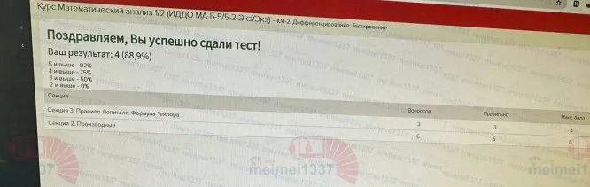 Для студентов ИДДО НИУ «МЭИ» по предмету Математический анализКурс Математический анализ - КМ-2. Дифференцирование. ТестированиеКурс Математический анализ - КМ-2. Дифференцирование. Тестирование