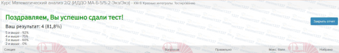 Курс Математический анализ 2/2 - КМ-9. Кратные интегралы. Тестирование - 81.8%