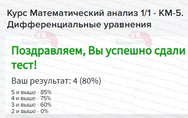 Ответы к заданиям КМ-5: Курс Математический анализ 1/1 - КМ-5. Дифференциальные уравнения. Тестирование