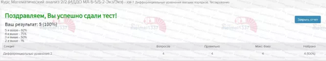 Для студентов ИДДО НИУ «МЭИ» по предмету Математический анализКурс Математический анализ 2/2 - КМ-7. Дифференциальные уравнения высших порядков. ТестированиеКурс Математический анализ 2/2 - КМ-7. Дифференциальные уравнения высших порядков. Тестирование