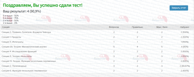Ответы к экзамену Экзамен: Полный курс Математический анализ 1/2 Итоговая работа - 90.9%