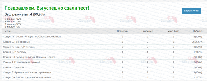 Ответы к экзамену Экзамен: Полный курс Математический анализ 1/2 Итоговая работа - 90.9%
