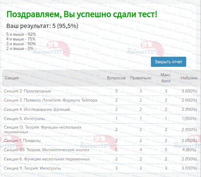 Ответы к экзамену Экзамен: Полный курс Математический анализ 1/2 Итоговая работа - 95.5%