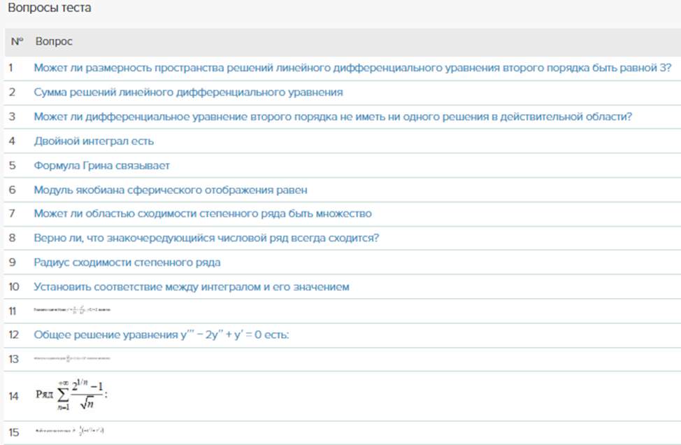 Список вопросов