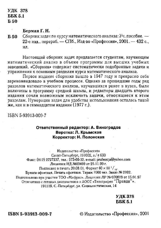 Для студентов по предмету Математический анализБерман Г.Н. - РешебникБерман Г.Н. - Решебник