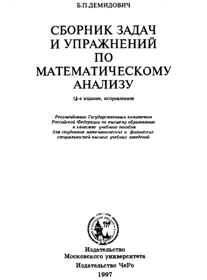 Для студентов по предмету Математический анализБ.П. Демидович - Сборник задач и упражнений по математическому анализу - 1997 - 13-е изданиеБ.П. Демидович - Сборник задач и упражнений по математическому анализу - 1997 - 13-е издание 2013-09-15СтудИзба