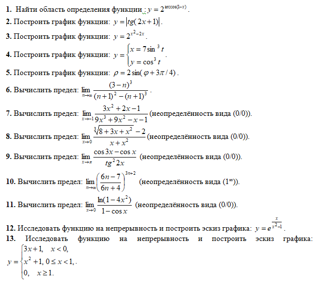 Курсовая работа: Вариант 9 - ТР №1 - Пределы вариант 9