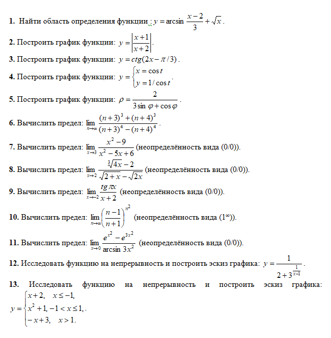 Курсовая работа: Вариант 13 - ТР №1 - Пределы вариант 13