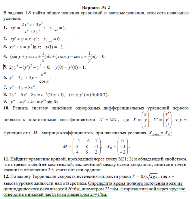 Вариант (2) - ТР - Дифференциальные уравнения.doc