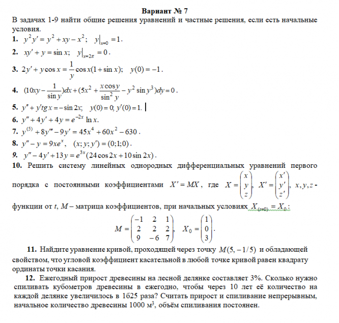 Курсовая работа: Вариант (7) - ТР - Дифференциальные уравнения вариант 7
