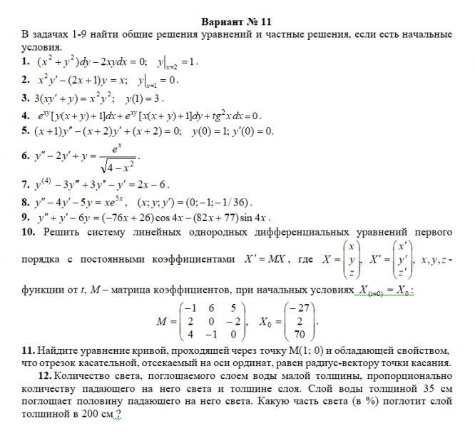 Курсовая работа: Вариант (11) - ТР - Дифференциальные уравнения вариант 11