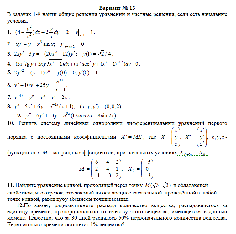 Вариант (13) - ТР - Дифференциальные уравнения.doc