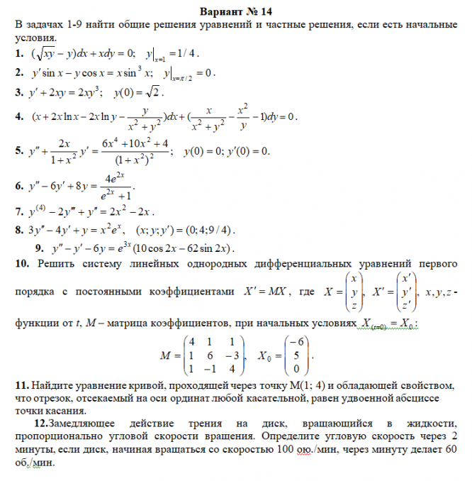 Курсовая работа: Вариант (14) - ТР - Дифференциальные уравнения вариант 14