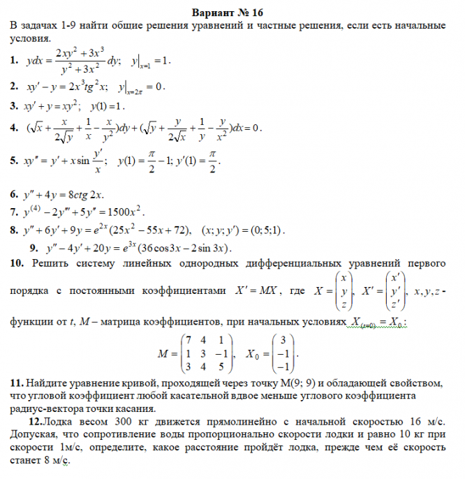 Курсовая работа: Вариант (16) - ТР - Дифференциальные уравнения вариант 16