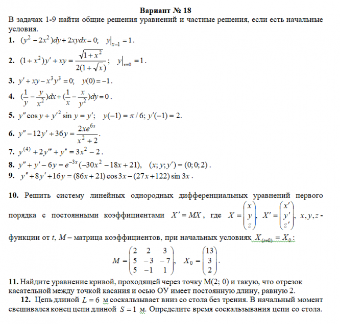 Курсовая работа: Вариант (18) - ТР - Дифференциальные уравнения вариант 18