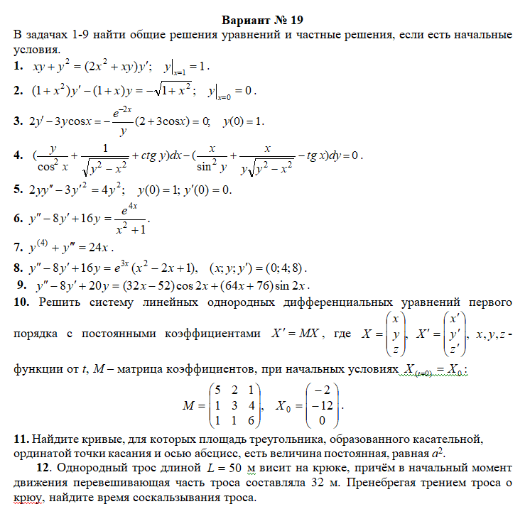 Курсовая работа: Вариант (19) - ТР - Дифференциальные уравнения вариант 19