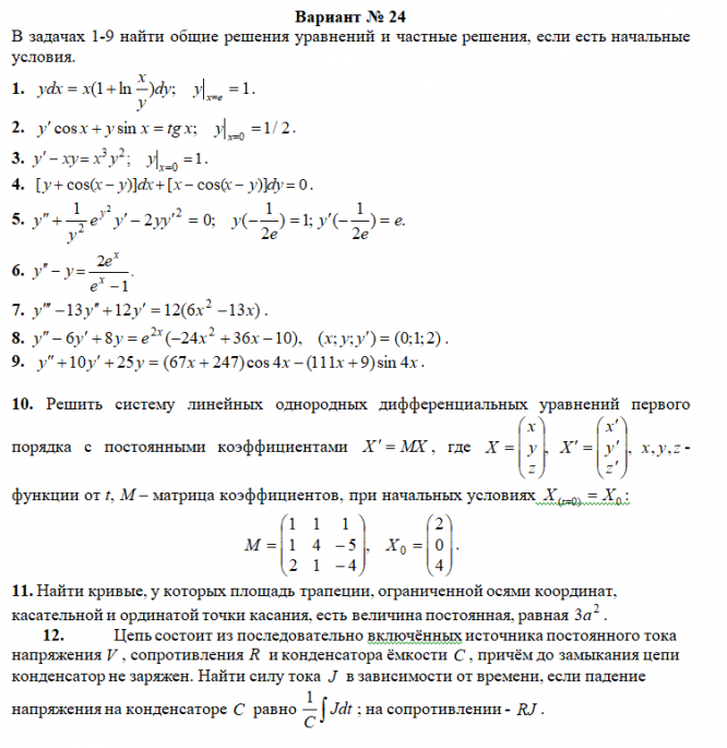 Курсовая работа: Вариант (24) - ТР - Дифференциальные уравнения вариант 24
