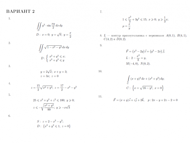 Вариант (2) - ТР - Кратные и криволинейные интегралы