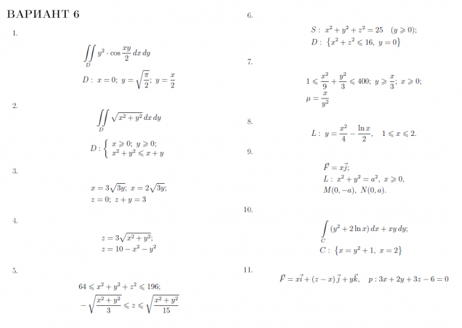 Вариант (6) - ТР - Кратные и криволинейные интегралы