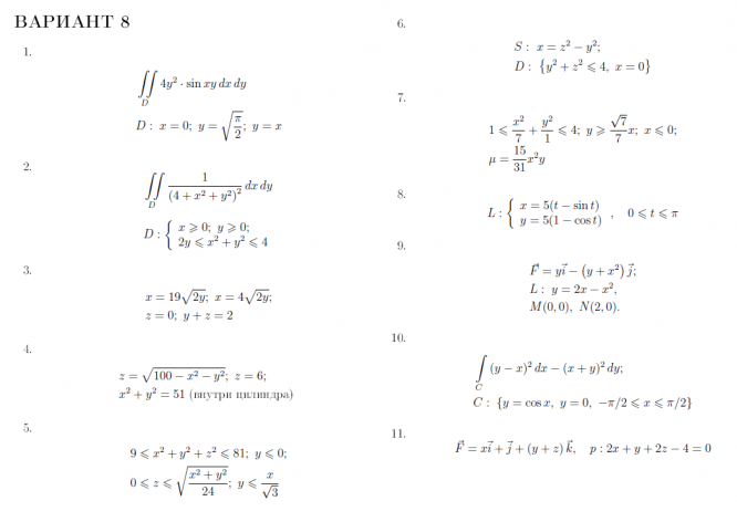 Вариант (8) - ТР - Кратные и криволинейные интегралы