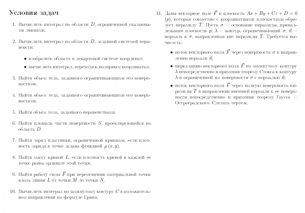 Для студентов НГТУ по предмету Математический анализВариант (10) - ТР - Кратные и криволинейные интегралыВариант (10) - ТР - Кратные и криволинейные интегралы