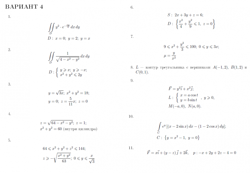 Вариант (4) - ТР - Кратные и криволинейные интегралы