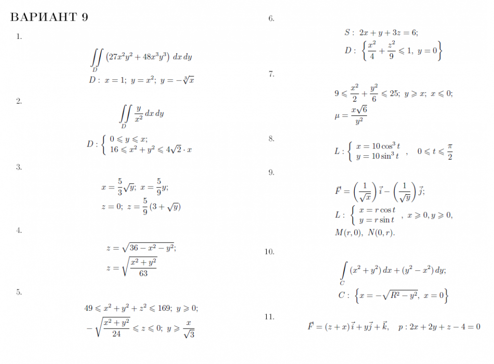 Вариант (9) - ТР - Кратные и криволинейные интегралы