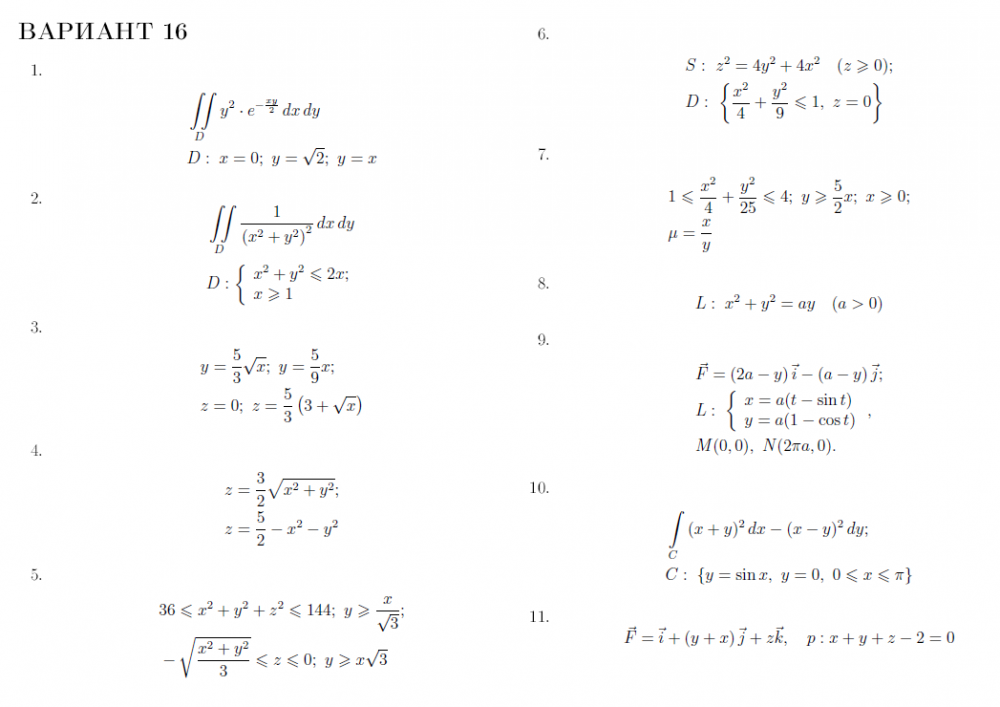 Вариант (16) - ТР - Кратные и криволинейные интегралы