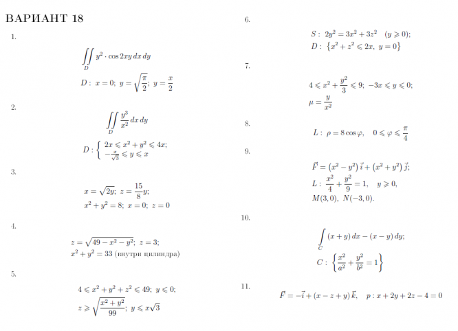 Вариант (18) - ТР - Кратные и криволинейные интегралы