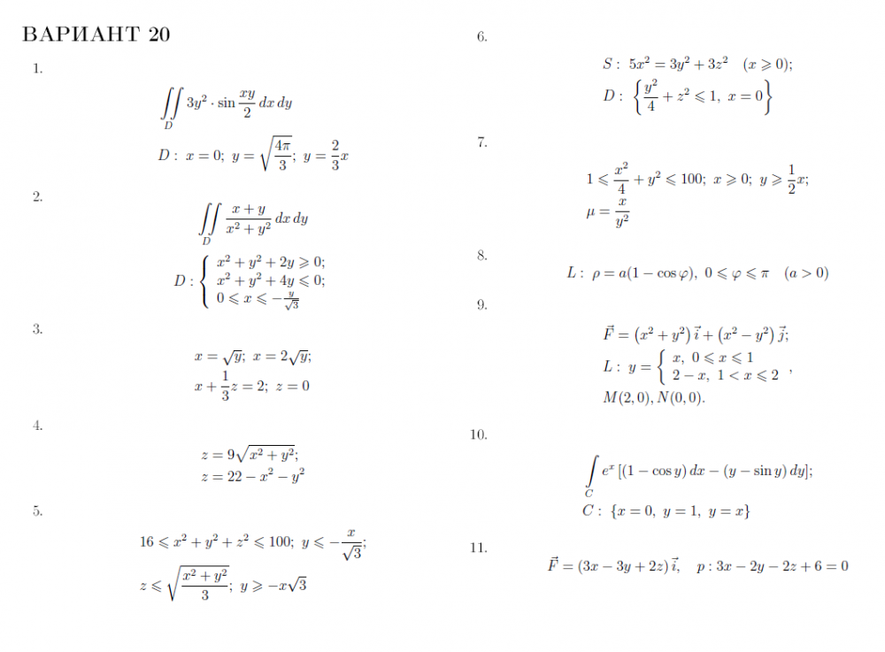 Вариант (20) - ТР - Кратные и криволинейные интегралы