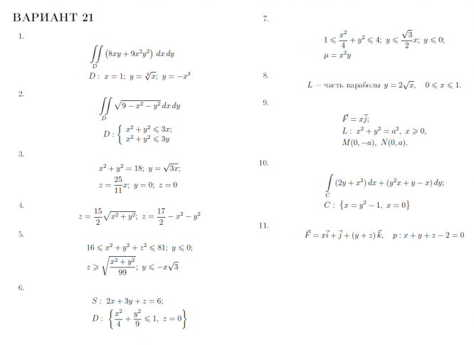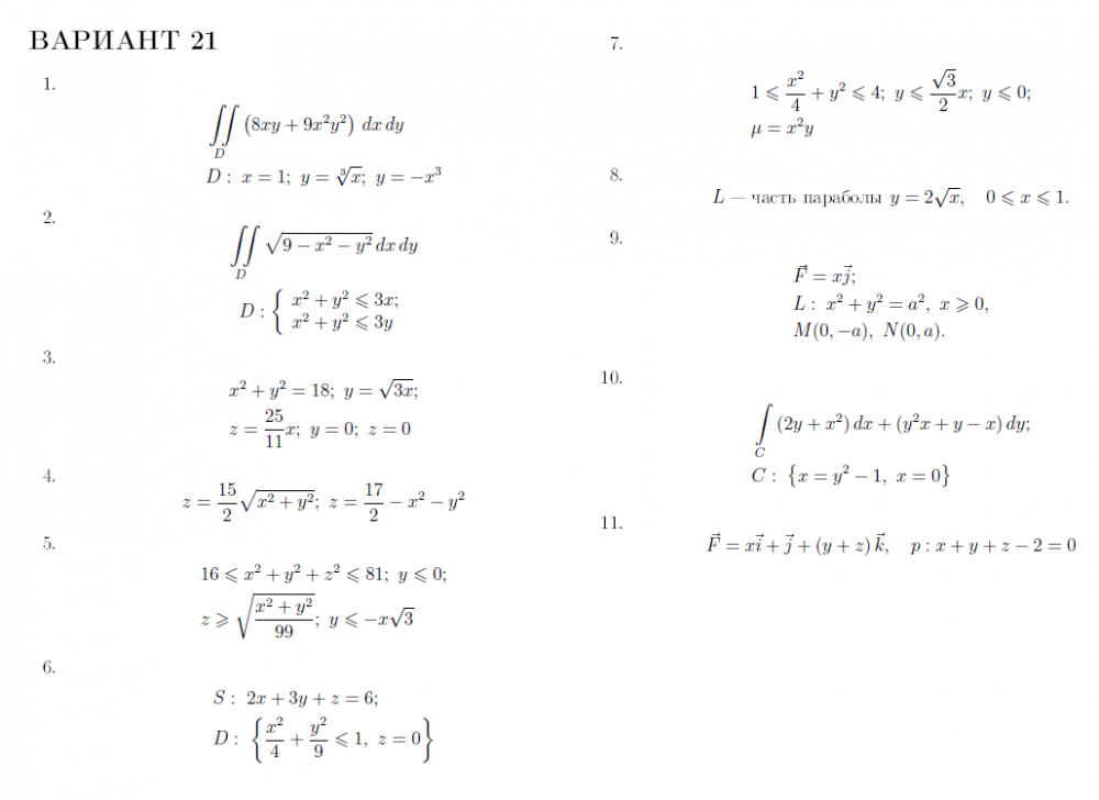 Вариант (21) - ТР - Кратные и криволинейные интегралы
