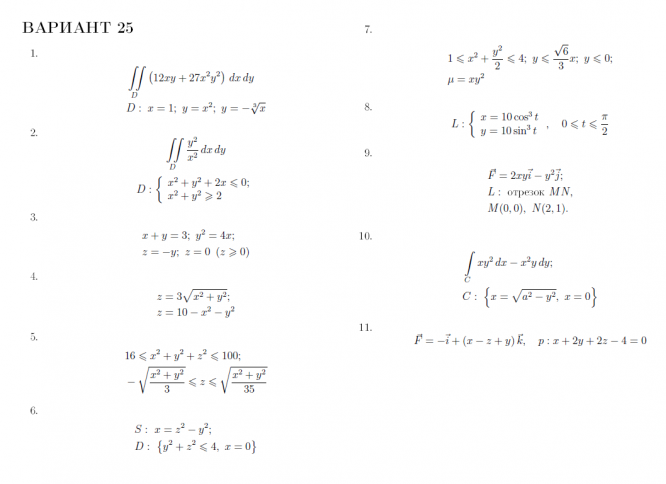 Вариант (25) - ТР - Кратные и криволинейные интегралы