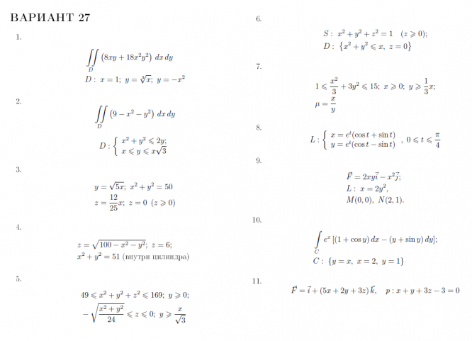 Вариант (27) - ТР - Кратные и криволинейные интегралы