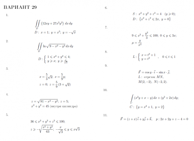 Вариант (29) - ТР - Кратные и криволинейные интегралы