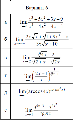 ДЗ 1.2: Пределы и непрерывность функций вариант 6
