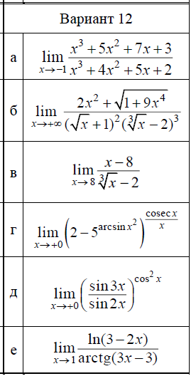 ДЗ 1.2: Пределы и непрерывность функций вариант 12
