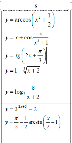 ДЗ 1.1: Элементарные функции и их графики вариант 5