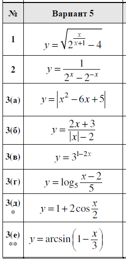 ДЗ 1.1: Элементарные функции и их графики вариант 5
