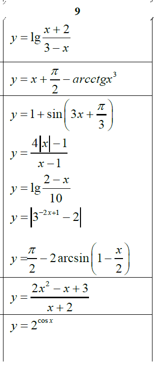 ДЗ 1.1: Элементарные функции и их графики вариант 9