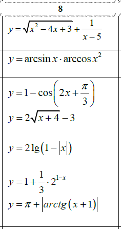 ДЗ 1.1: Элементарные функции и их графики вариант 8