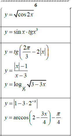 ДЗ 1.1: Элементарные функции и их графики вариант 6
