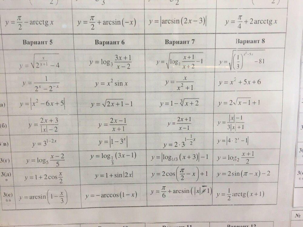 ДЗ 1.1: Элементарные функции и их графики вариант 8