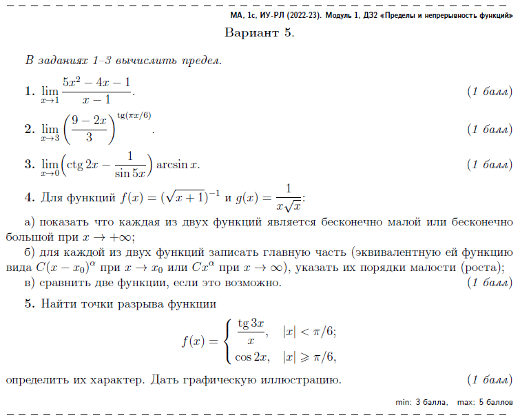 ДЗ 2: Пределы и непрерывность функций вариант 5
