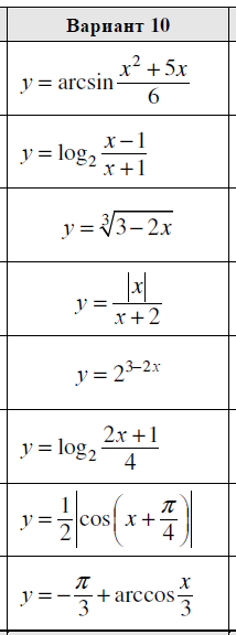 ДЗ 1.1: Элементарные функции и их графики вариант 10