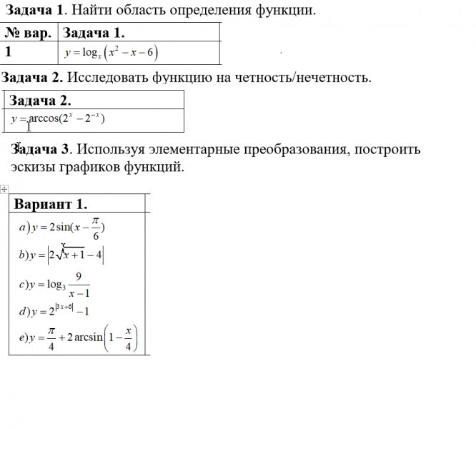 ДЗ 1.1: Элементарные функции и их графики вариант 1