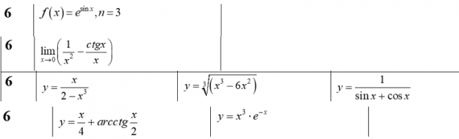 ДЗ 2: Приложения дифференциального исчисления вариант 6