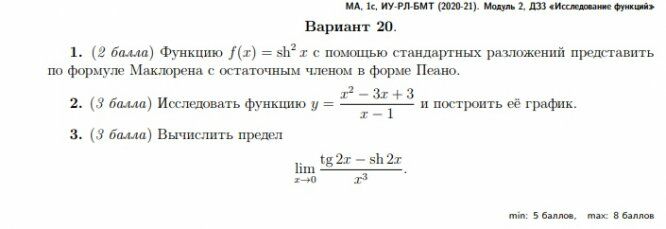 ДЗ 3: Исследование функций и построение их графиков вариант 20