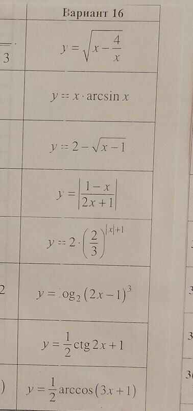 ДЗ 1.1: Элементарные функции и их графики вариант 16