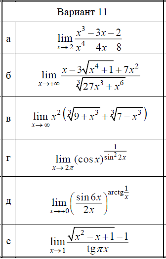 ДЗ 1.2: Пределы и непрерывность функций вариант 11